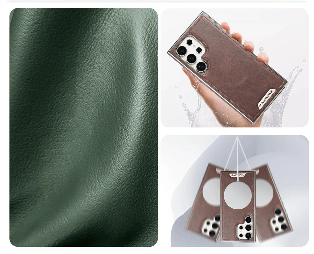O couro resistente preserva o visual elegante por mais tempo, protegendo o aparelho com um toque de classe atemporal.