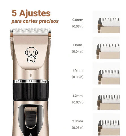 Com 5 níveis de comprimento (0,8–2 mm) e 4 pentes guia (3 mm, 6 mm, 9 mm e 12 mm), você tem total controle para adaptar o corte conforme a necessidade do seu pet.