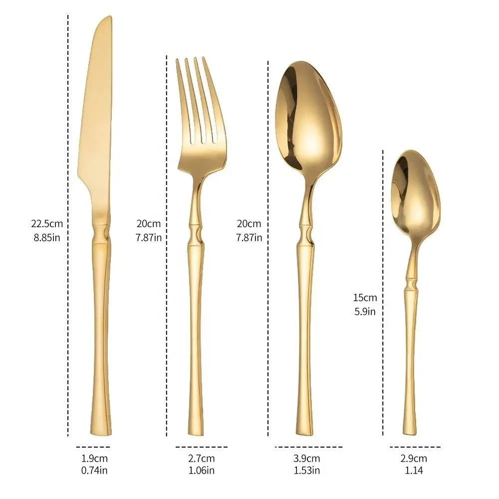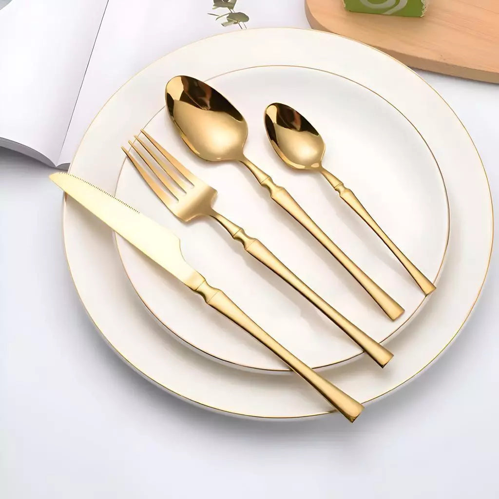 - 1x Conjunto de Talheres Dourado 24 Peças de Aço Inoxidável