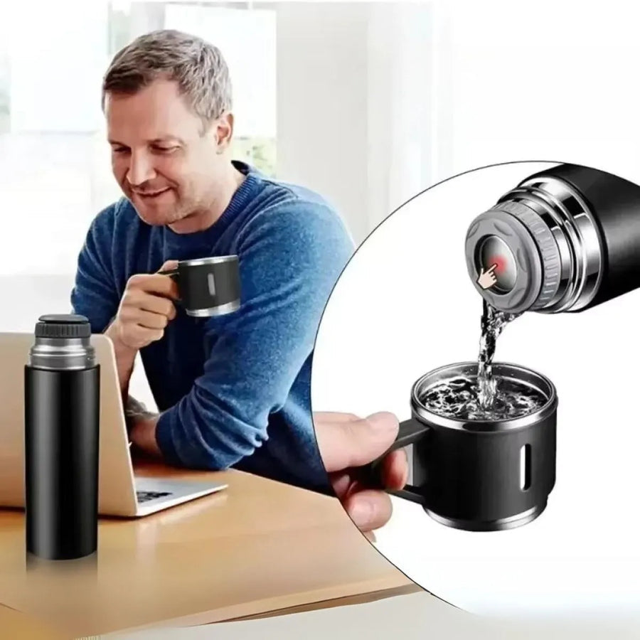 • 1x Conjunto Garrafa Térmica Inox com 3 Canecas