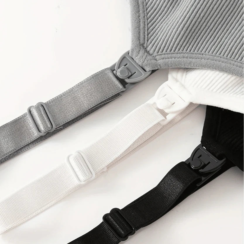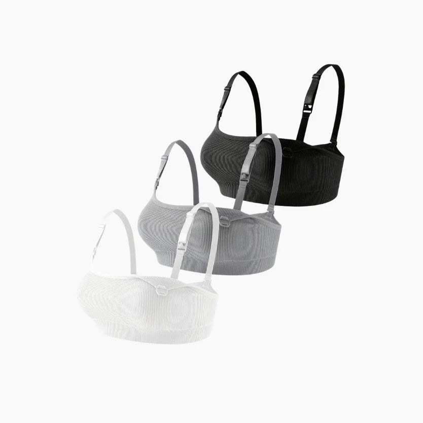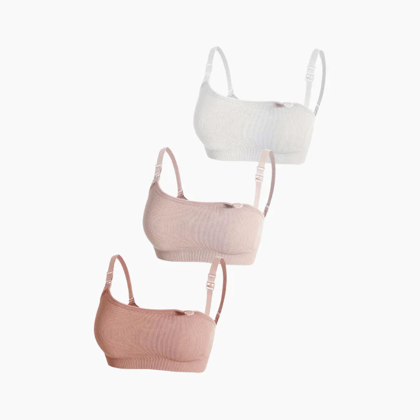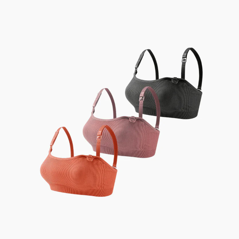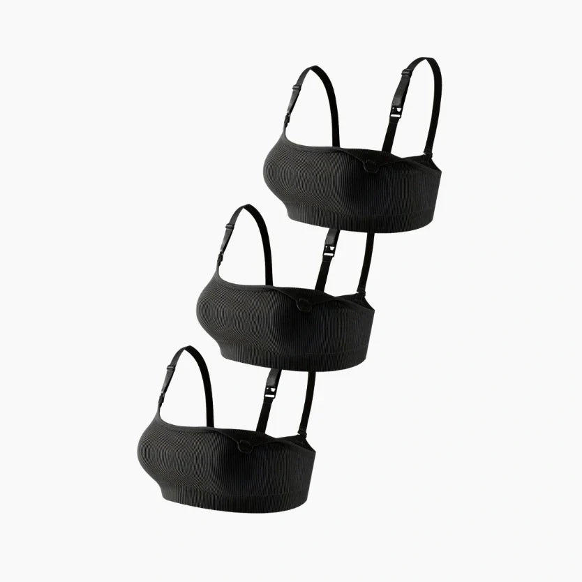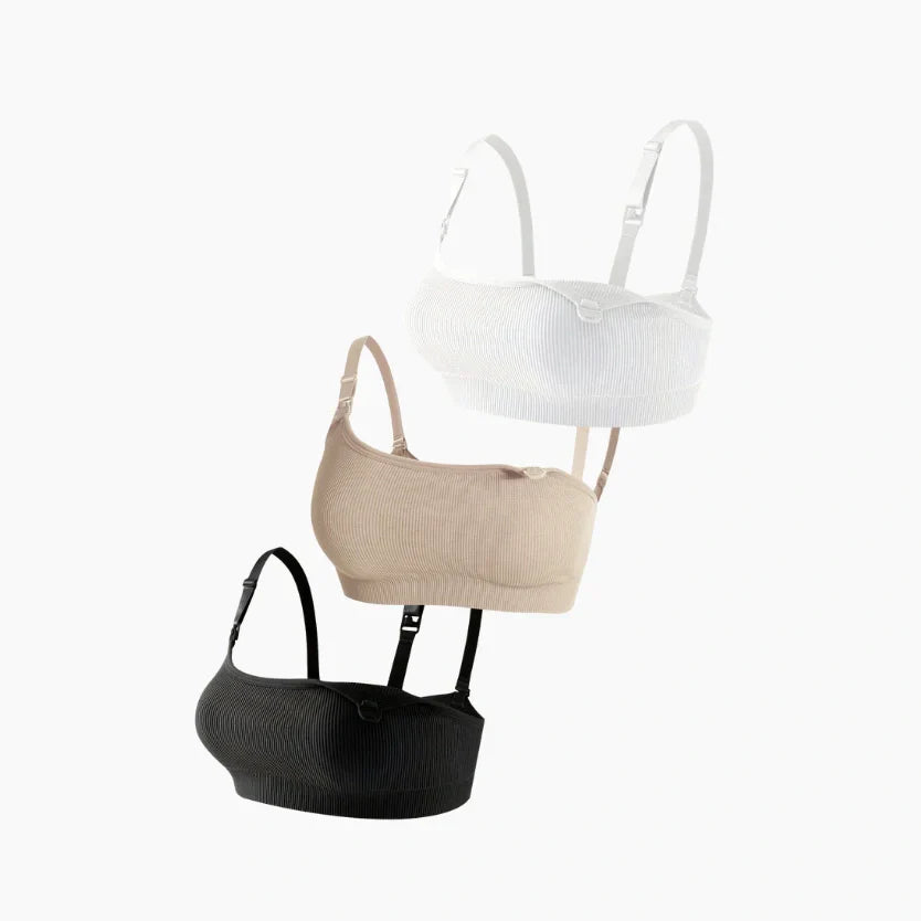O Kit com 3 Sutiãs de Amamentação sem Bojo Canelados com Nervuras Macias foi desenvolvido para oferecer o máximo de conforto e sustentação durante e após a amamentação.