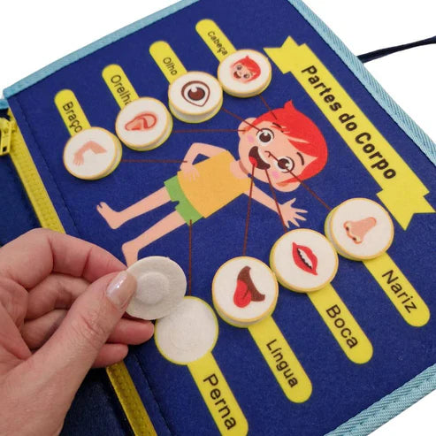 Com recursos interativos como relógio analógico, fechos, cadarços, engrenagens, botões, zíperes, cores, formas, animais, clima e muito mais, o livro apresenta desafios que desenvolvem habilidades práticas e cognitivas importantes para a infância.