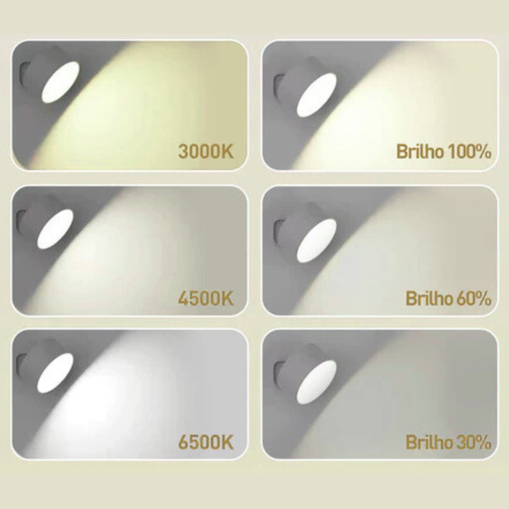 Com 3 níveis de brilho e 3 temperaturas de cor (quente, fria e neutra), você ajusta a iluminação de acordo com o momento desde um clima relaxante até uma luz intensa.