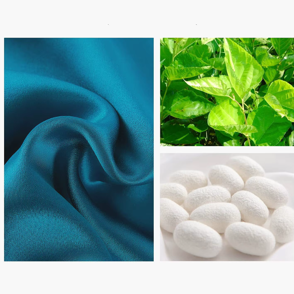Leve, respirável e extremamente macia, a seda de amoreira proporciona frescor, previne irritações e favorece a saúde da pele e dos cabelos.